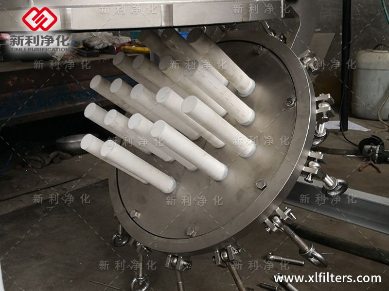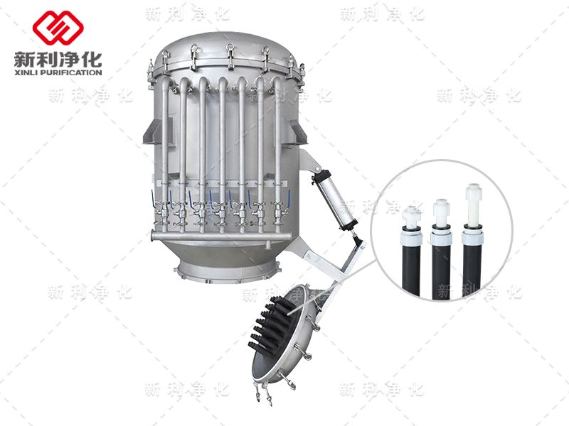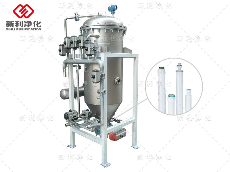 PA/PE微孔精密過濾機以燒結管作為過濾介質,溶液經前期處理后含懸浮物的廢水、廢氣通過介質,對0.3微米以上的固體顆粒得到有效截留,從而達到去除懸浮物的目的。氣體反吹下渣同時再生過濾管,密閉過濾安全生產,無氣體外溢。能實現大口徑氣動排渣底蓋的快速閉起,封蓋折卸無須起重裝置,清理、維護方便快捷。